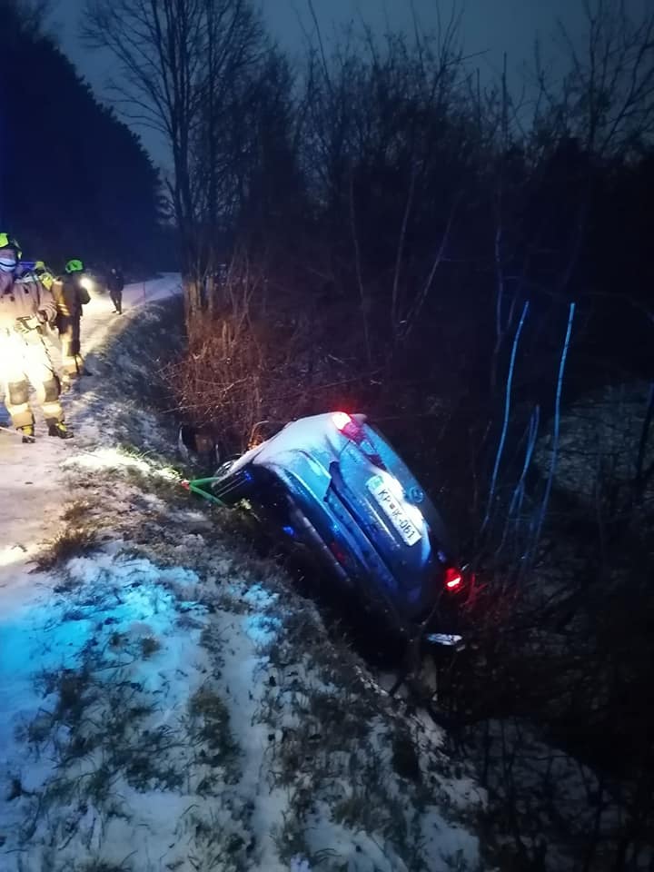 Ob 16.29 je v bližini naselja Rodik, občina Hrpelje – Kozina, osebno vozilo na deloma zasneženem in poledenelem vozišču zdrsnilo z vozišča in obstalo na boku, javlja uprava za zaščito in reševanje.