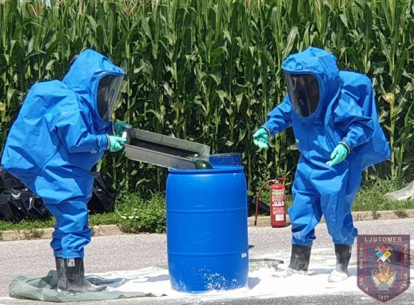Izteklo je okoli 70 litrov kisline. Posredovali so gasilci PGD Ljutomer in Murska Sobota, ki so zavarovali kraj nesreče, zatesnili predrta soda, z apnom posipali izteklo tekočino na tovornem vozilu in cestišču, pretovorili ostale sode na drugo vozilo in hladili sode, v katerih je bil aceton, ki se je začel pregrevati. Aktivirani so bili tudi gasilci PGD Gornja Radgona, ki so bili v pripravljenosti v gasilskem domu. Predrta soda in apno s katerim so gasilci nevtralizirali izteklo kislino so prevzeli in odpeljali delavci podjetja Saubermacher.