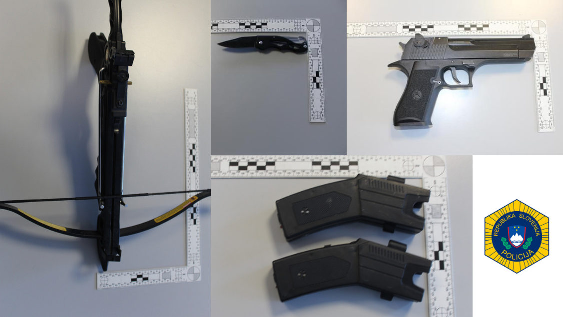 Kot sporočajo s PU Kranj, obstaja utemeljen sum, da je moški že dlje časa grozil staršema, nazadnje pa je v torek po prepiru huje verbalno in z nožem grozil enemu od njiju. Policisti so v hitri intervenciji osumljenca obvladali, proti njemu uporabili prisilna sredstva (lisice) in ga za čas zbiranja obvestil pridržali. V preiskavi so mu zasegli več predmetov, ki so bili uporabljeni za grožnje, med njimi samostrel, več nožev, bodalo, plinsko pištolo in predmet z videzom paralizatorja. V kaznivem dejanju ni bil nihče telesno poškodovan. Z ugotovitvami so policisti seznanili pristojno državno tožilstvo. Izrečena mu je bila prepoved približevanja. Za dejanje bo kazensko ovaden.