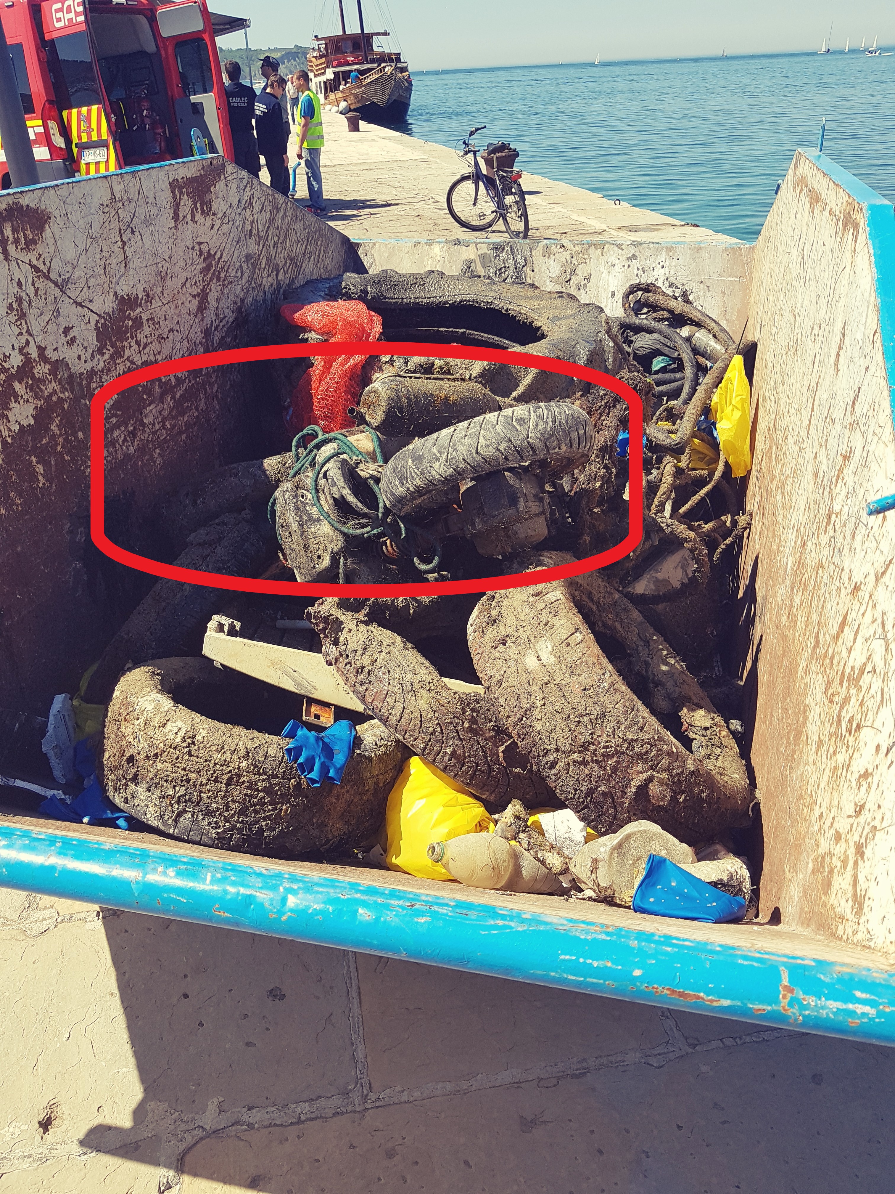 Bralka Simona nam je poslala fotografijo iz Izole, ko so tamkajšnji gasilci in potapljači ravno zaključevali akcijo čiščenja slovenskega morja. V njem so našli za celoten kontejner odpadkov, večinoma gum, med njimi pa smo opazili celo skuter.