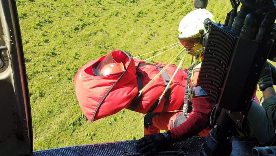 Gorski reševalci GRS Bovec in dežurna ekipa GRS na Brniku so obnemoglega planinca dvignili v helikopter, ki ga je odpeljal v bolnišnico na Jesenice, poroča spin112.