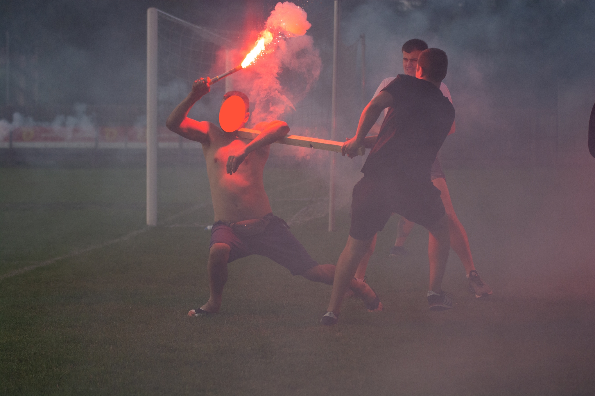Incident se je zgodil 4. septembra ob 18:45 uri, ko je na igrišče med nogometno tekmo vdrla skupina nasilnežev. Poškodovali so dva nogometaša in enega udeleženca. V incidentu je bilo udeleženih okoli 20 oseb. Dva nasilneža so policisti že prepoznali, o ostalih pa še zbirajo obvestila. Okoliščine kažejo, da gre za nasilje med navijaškima skupinama z območja Ljubljane in Primorske. V dogodku policija obravnava sume kaznivega dejanja Nasilništva (296. člen Kazenskega zakonika) ter prekrške zaradi uporabe pirotehnike, oviranja javne prireditve (oboje 23. člen Zakona o javnih zbiranjih) in nasilno ter drzno vedenje posameznikov oziroma skupine (6. člen Zakona o varstvu javnega reda in miru). Obvestila se zbirajo tudi v smeri prepovedi udeležbe posameznikom na športnih prireditvah (62. člen Zakona o nalogah in pooblastilih policije),« javnosti sporoča Miran Šadl s PU Maribor.
