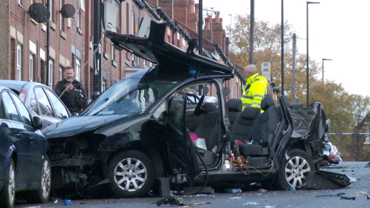 Iz Sheffilda poročajo o tragediji. Voznik golfa ni ustavil na znake policijske patrulje v četrti Darnall in je z veliko hitrostjo treščil v tourana, v katerem je bilo sedem ljudi, člani dveh družin.