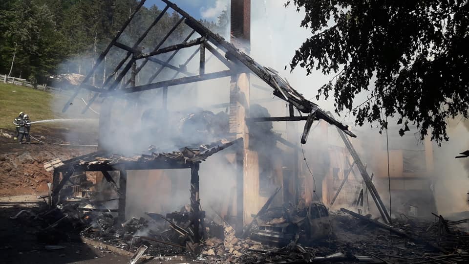 Kos piše: “Poslopje je uničeno, prav tako pripadajoči objekti, poškodovan pa je del stanovanjske hiše. Požar je pogašen, gasilci pa že pregledujo požarišče in iščejo posamezna žarišča. Po prvih podatkih v objektih ni bilo nikogar. Na kraju je bil najden poginuli pes. Lažje poškodovani so tudi trije gasilci, ki so v zahtevni intervenciji pred uničenjem uspeli rešiti stanovanjsko hišo. Požar je gasilo 95 gasilcev z 20. vozili. Aktivnosti na terenu še potekajo. Materialna škoda je velika. Več podatkov sporočimo predvidoma jutri.”