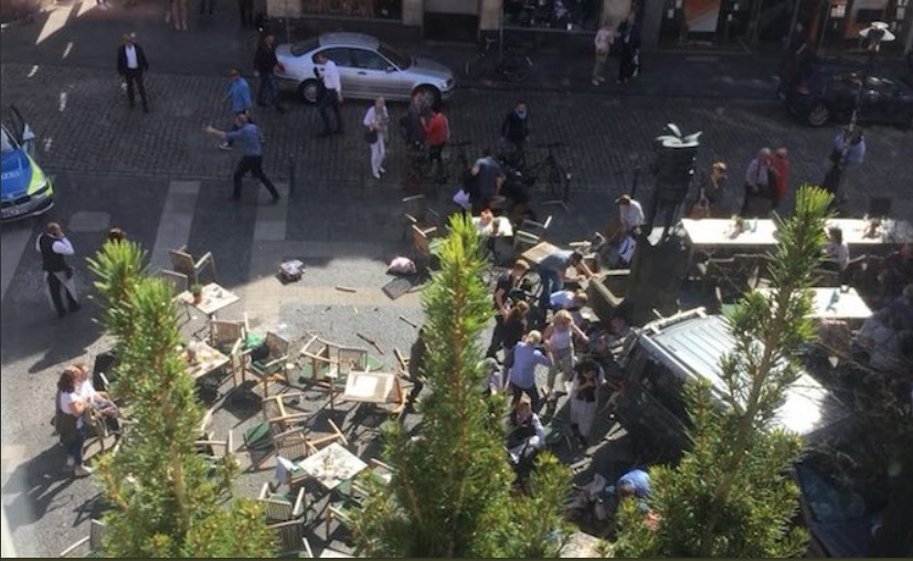 MÜNSTER – Napad z avtomobilom v starem mestnem središču v Münstru na zahodu Nemčije je po podatkih notranjega ministrstva zahteval tri smrtne žrtve. Umrl je tudi napadalec, ki se je v vozilu ustrelil, je sporočila policija, ki pa na območju preverja, ali je imel napadalec pomočnike. Dve osebi naj bi videli izskočiti iz vozila.
