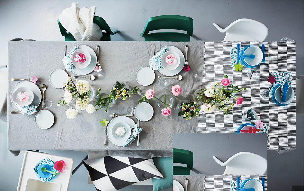 Prekratek prt oziroma kos blaga? Nič zato, »zakrpajte« ga z drugim kosom. Morda tja posedite otroke in jim recite, da je ta prt namenjen prav njim, da lahko imajo na mizi povsem svoj kotiček.