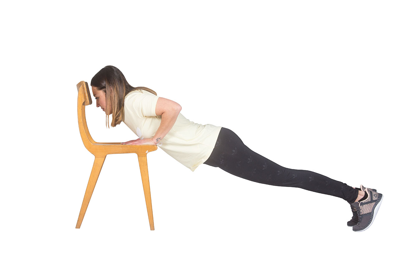 To vajo že poznamo, le da jo tokrat izvajamo z rokami oprtimi na sedalo stola.