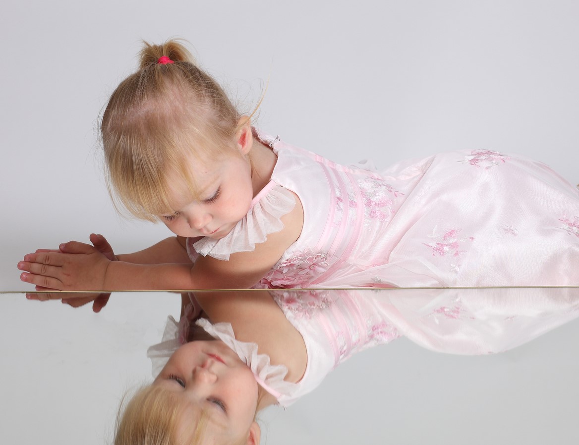 To pomeni, da se do te starosti (enega leta) vsakič znova, ko se pogleda v ogledalo, razveseli »nove« osebe.