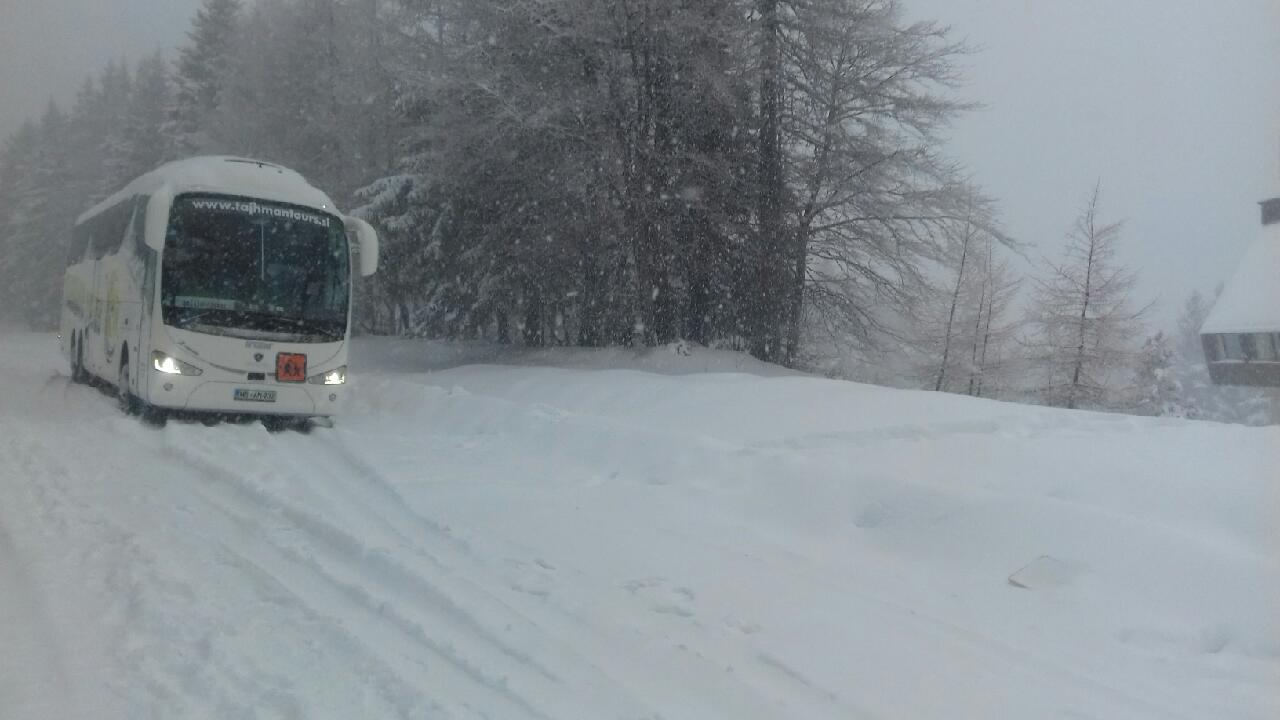 Z Areha na Pohorju so se javili smučarji, ki sporočajo, da se ne morejo vrniti v dolino, saj je cesta zaradi močnega sneženja neprevozna! Po pripovedovanju za vrnitev domov čaka tudi avtobus, poln šolskih otrok.
