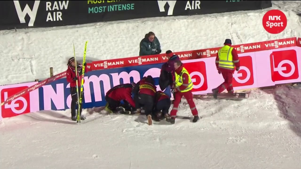 VIDEO: Huda nesreča Križnarjeve v izteku skakalnice, tekmo prekinili