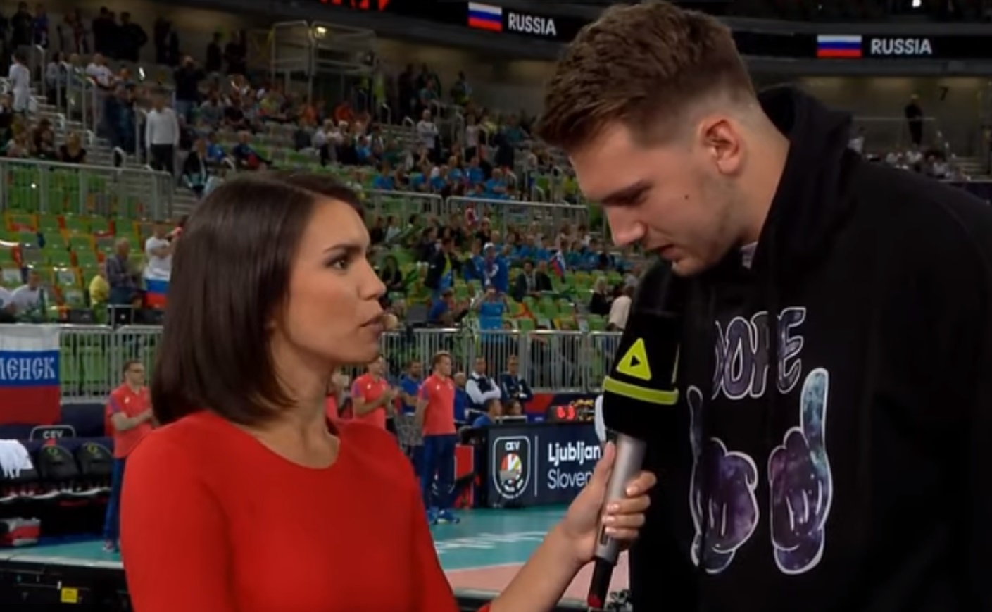 Pred tekmo z Rusijo je bil gost v studiu, ker se je voditeljici Nataši Gavranić pripetila velika napaka. “Ravno včeraj je bila druga obletnica vaše srebrne medalje, košarkarska reprezentanca se je veselila naslova evropskih podprvakov,” je Dončića povprašala voditeljica in se pri tem spozabila, da so bili košarkarji evropski prvaki.