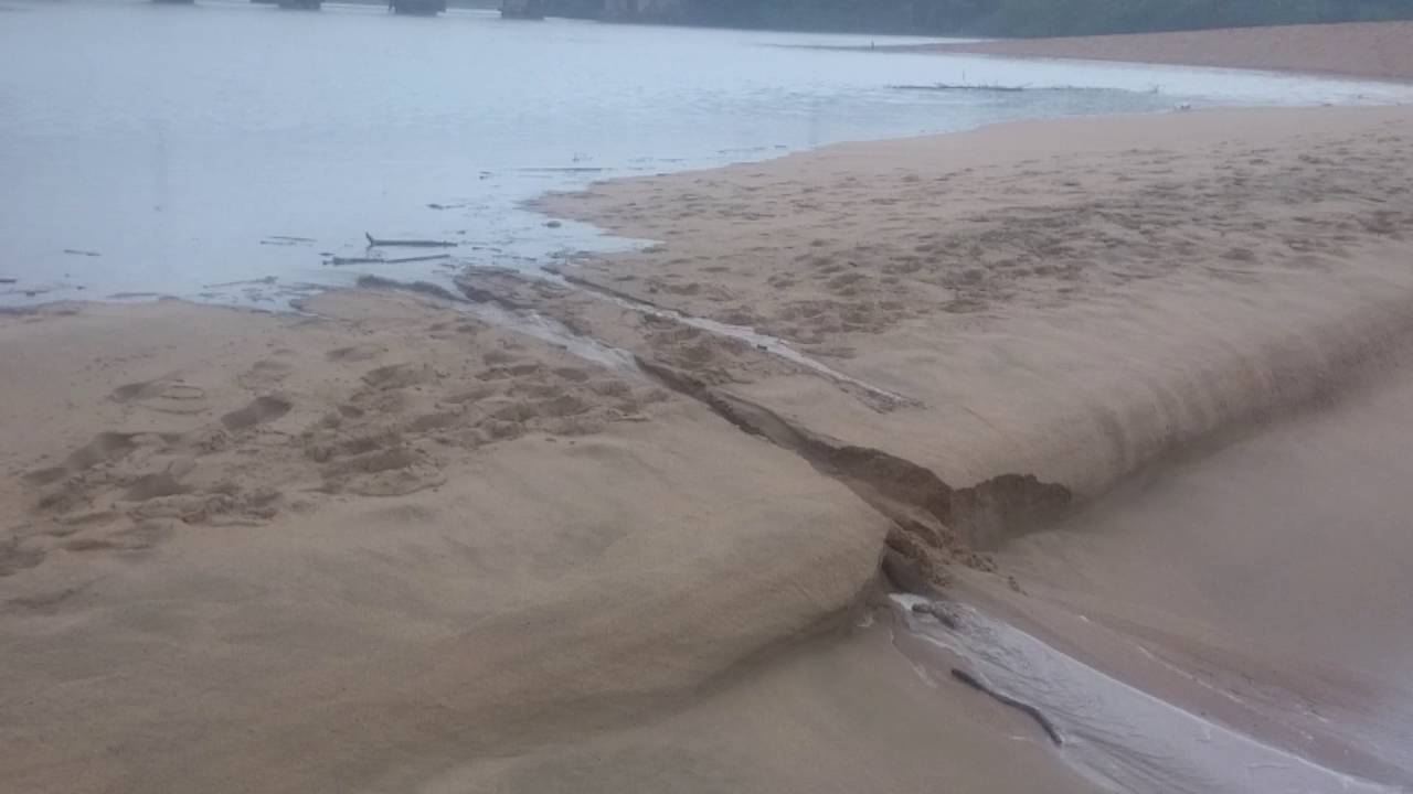 Neki moški je na kamero ujel zanimiv trenutek, ko je reka predrla nizek peščeni nasip in se začela izlivati v Indijski ocean.